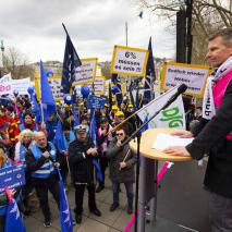 Mehr als 1.000 öffentlich Beschäftigte sind am (12.02.2019) in Stuttgart auf die Straße gegangen, um der Forderung ihrer Gewerkschaft nach deutlichen Einkommensverbesserungen Nachdruck zu verleihen. Zu landesweiten Warnstreiks und der Protestveranstaltung in Stuttgart haben der deutsche und der